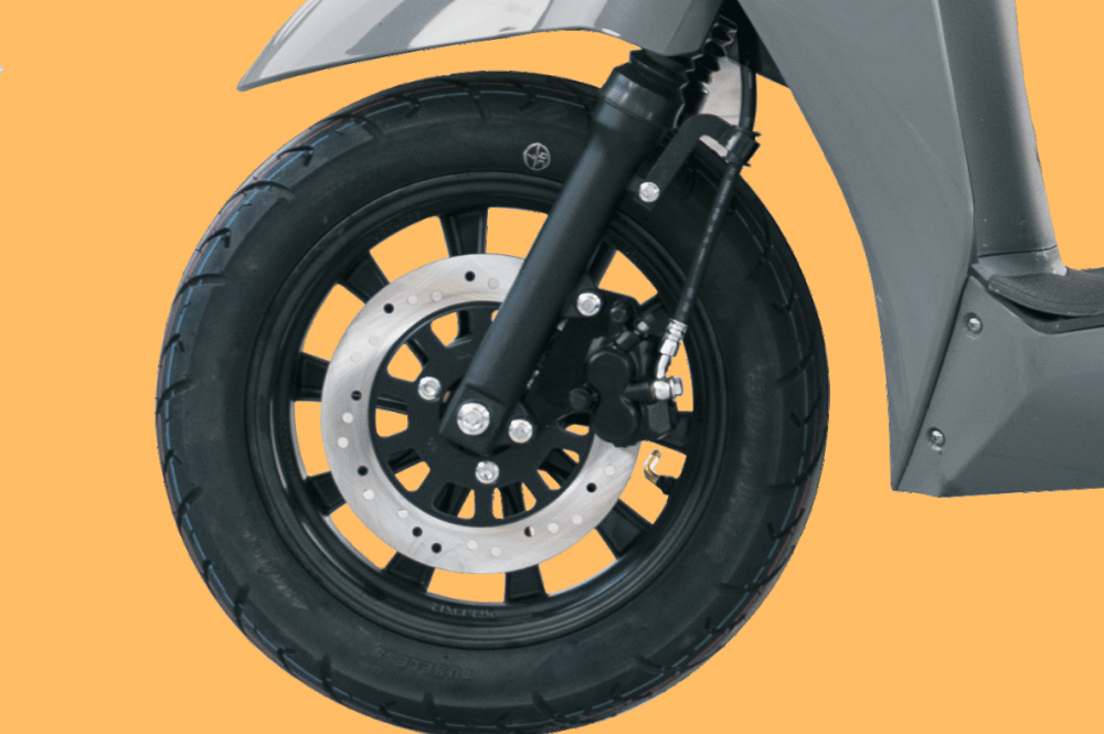 Illuminate Your Ride with Style Our EV scooter comes equipped with a sleek, modern headlamp that enhances visibility and safety, especially during night rides.Large Wheels