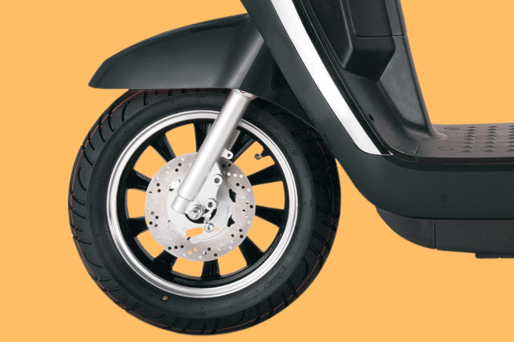 Illuminate Your Ride with Style Our EV scooter comes equipped with a sleek, modern headlamp that enhances visibility and safety, especially during night rides.Large Wheels